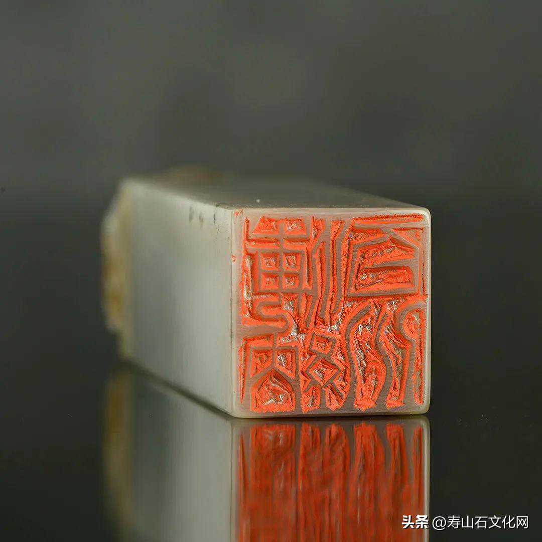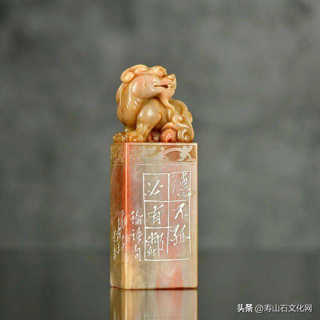寿山石本身具有入印的天然优势:“洁净如玉。大者可一、二尺。柔而易攻,盖珉类也。”其石性柔软,易于奏刀雕琢,而且质地洁净温润,颜色丰富,适宜手中赏玩,颇受到文人的青睐。