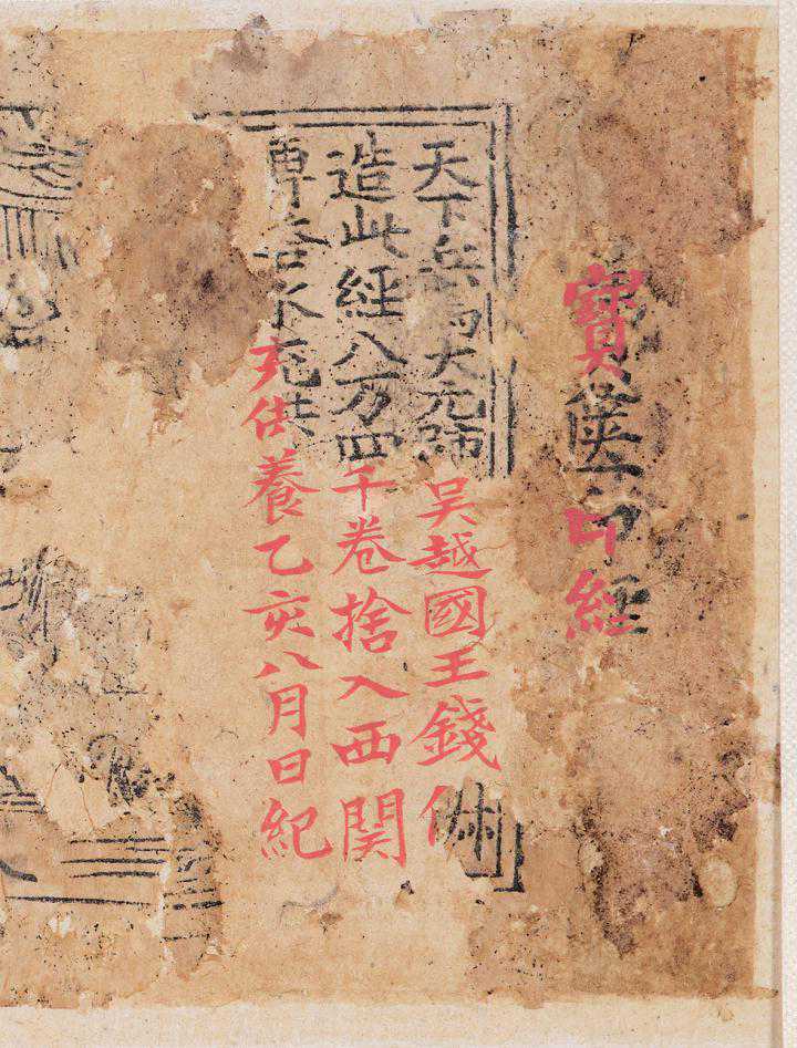 五代十国时期,吴越国末代国王钱俶分别在丙辰岁(956)、乙丑岁(965)、乙亥岁(975)三次组织雕版印刷各八万四千卷《宝箧印陀罗尼经》。其中乙亥岁(975)印刷的八万四千《宝箧印陀罗尼经》,全部舍入当年正在建造的雷峰塔中。