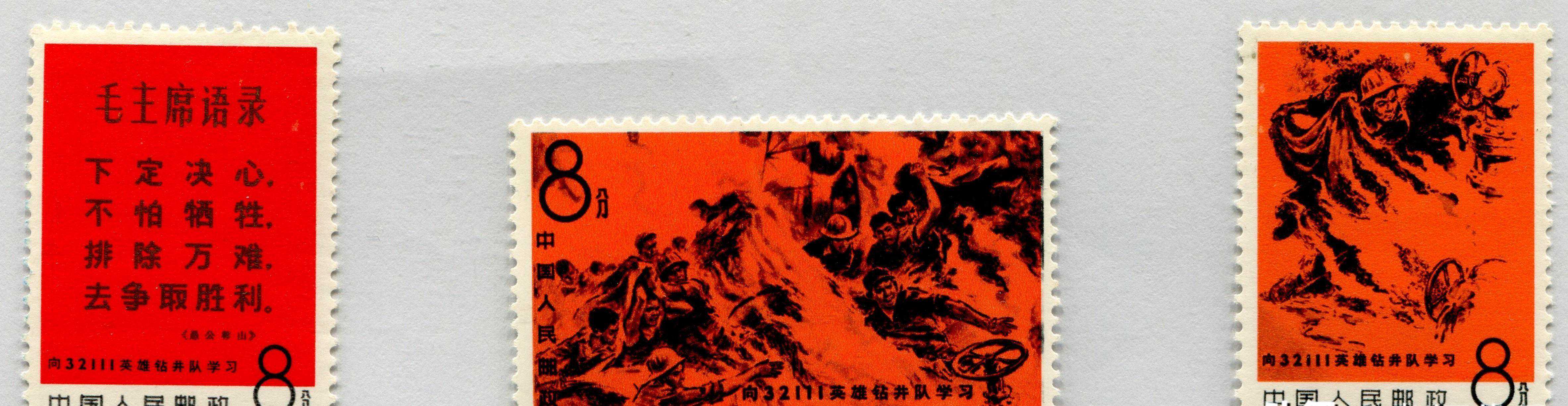 纪124钻井队邮票发行于1967年3月10日,纪念32111钻井队的英雄事迹,最新成交价为2550元,上周涨幅为1333%,展示了工业题材邮票的独特魅力。