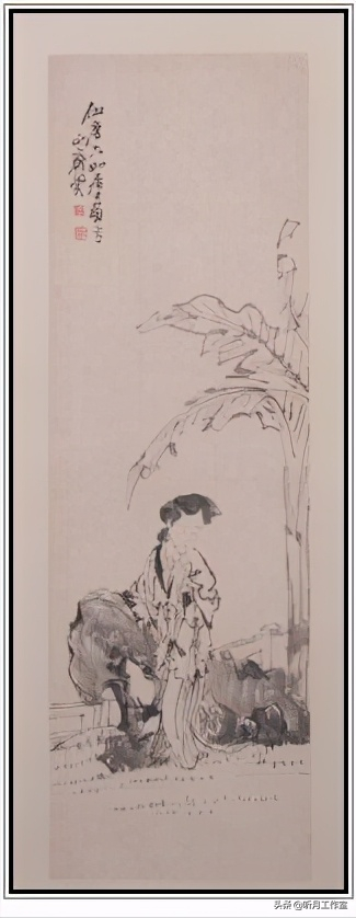 《芭蕉仕女图》轴,清,闵贞绘,纸本,墨笔,纵97.3厘米,横31厘米。北京故宫博物馆。