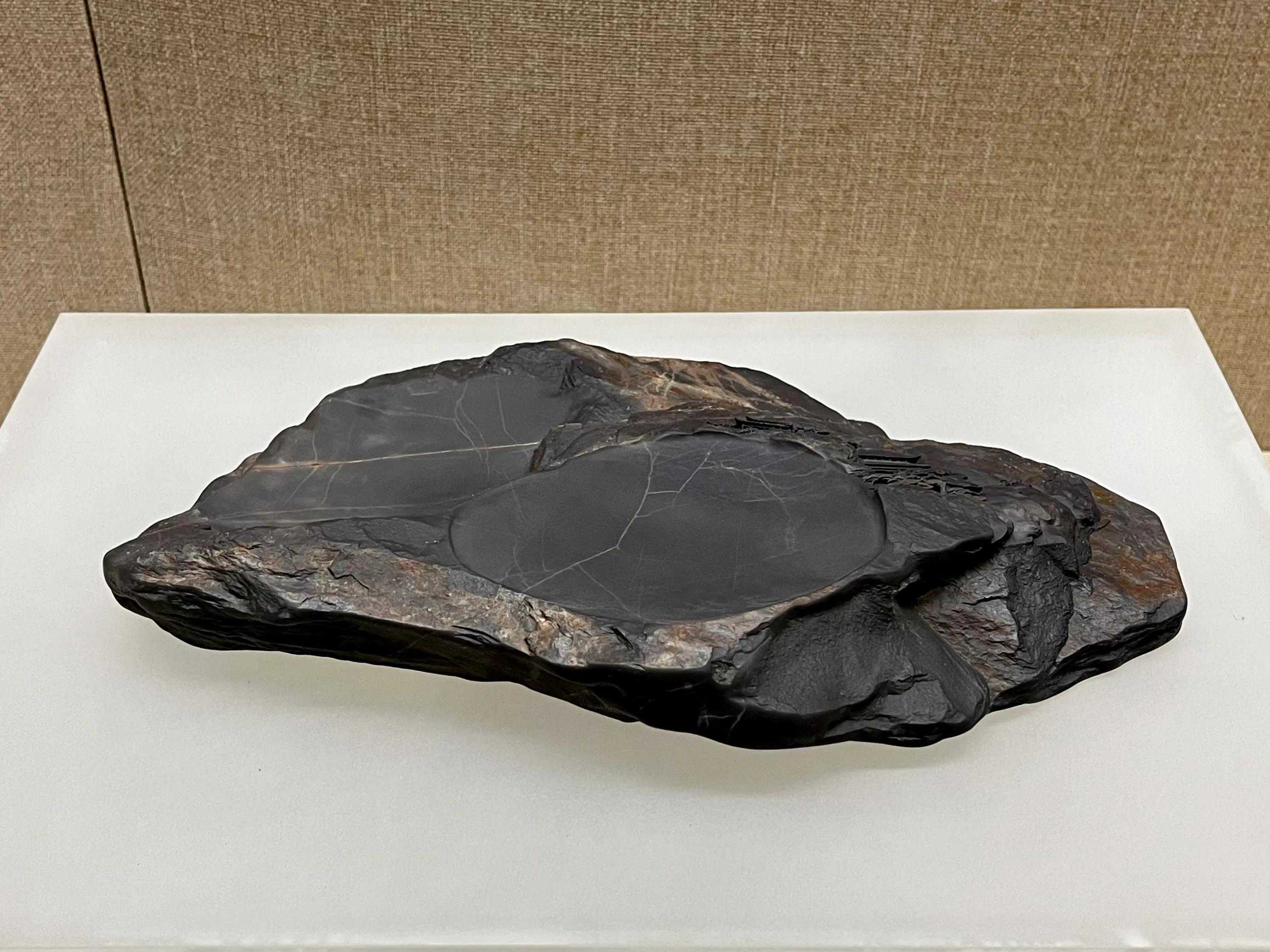 坑仔岩石。砚右侧铭文:上洞神品。