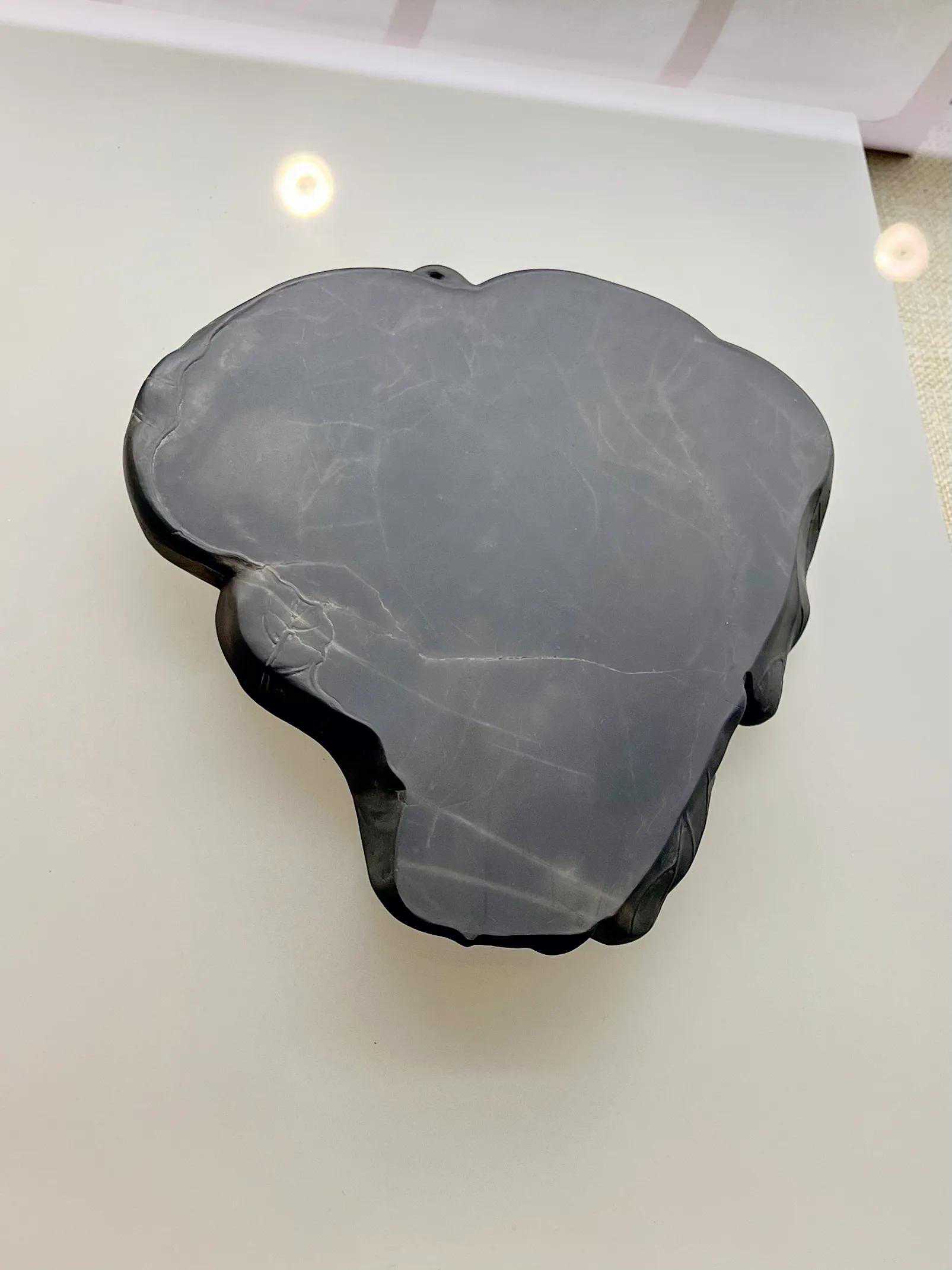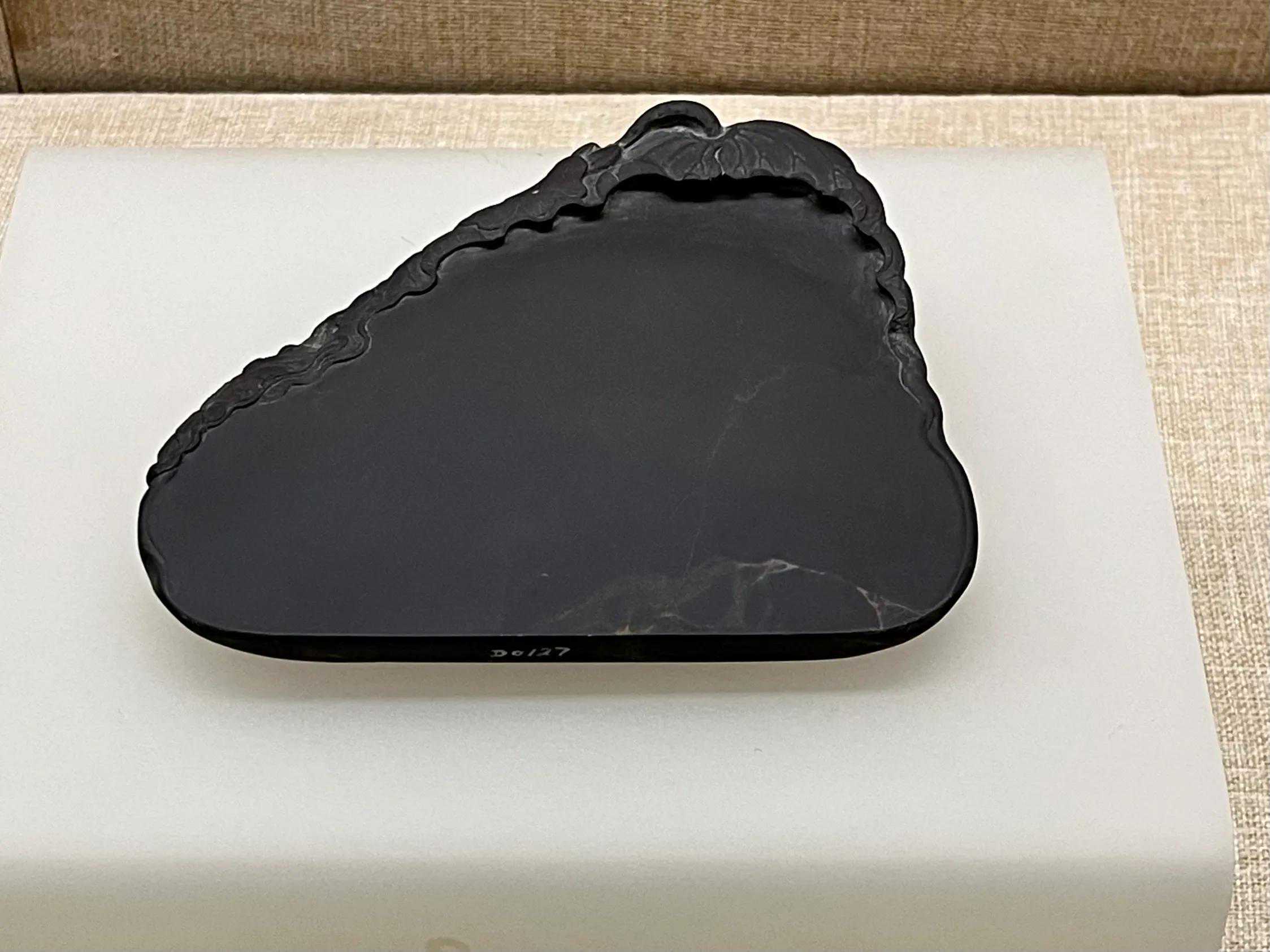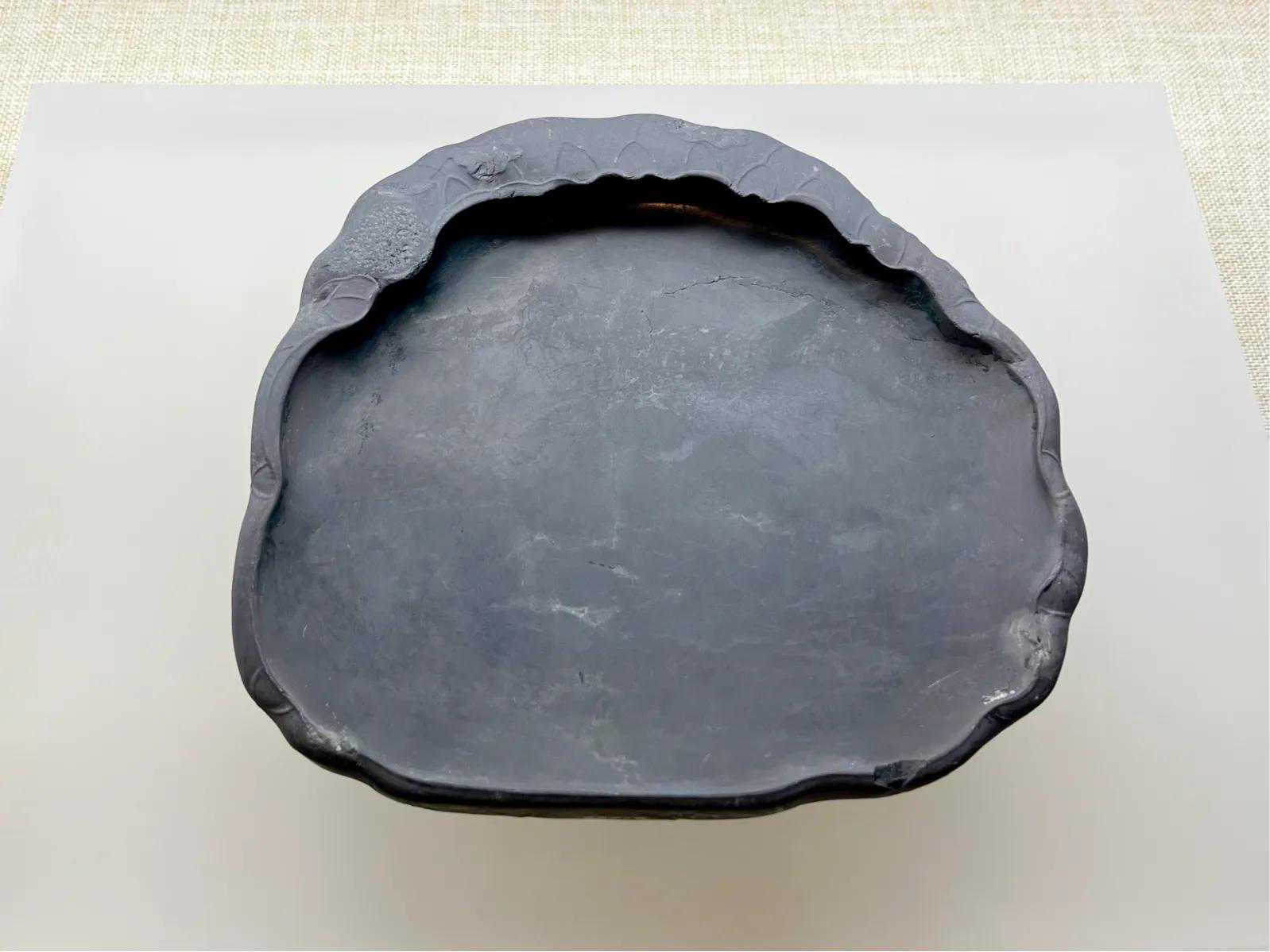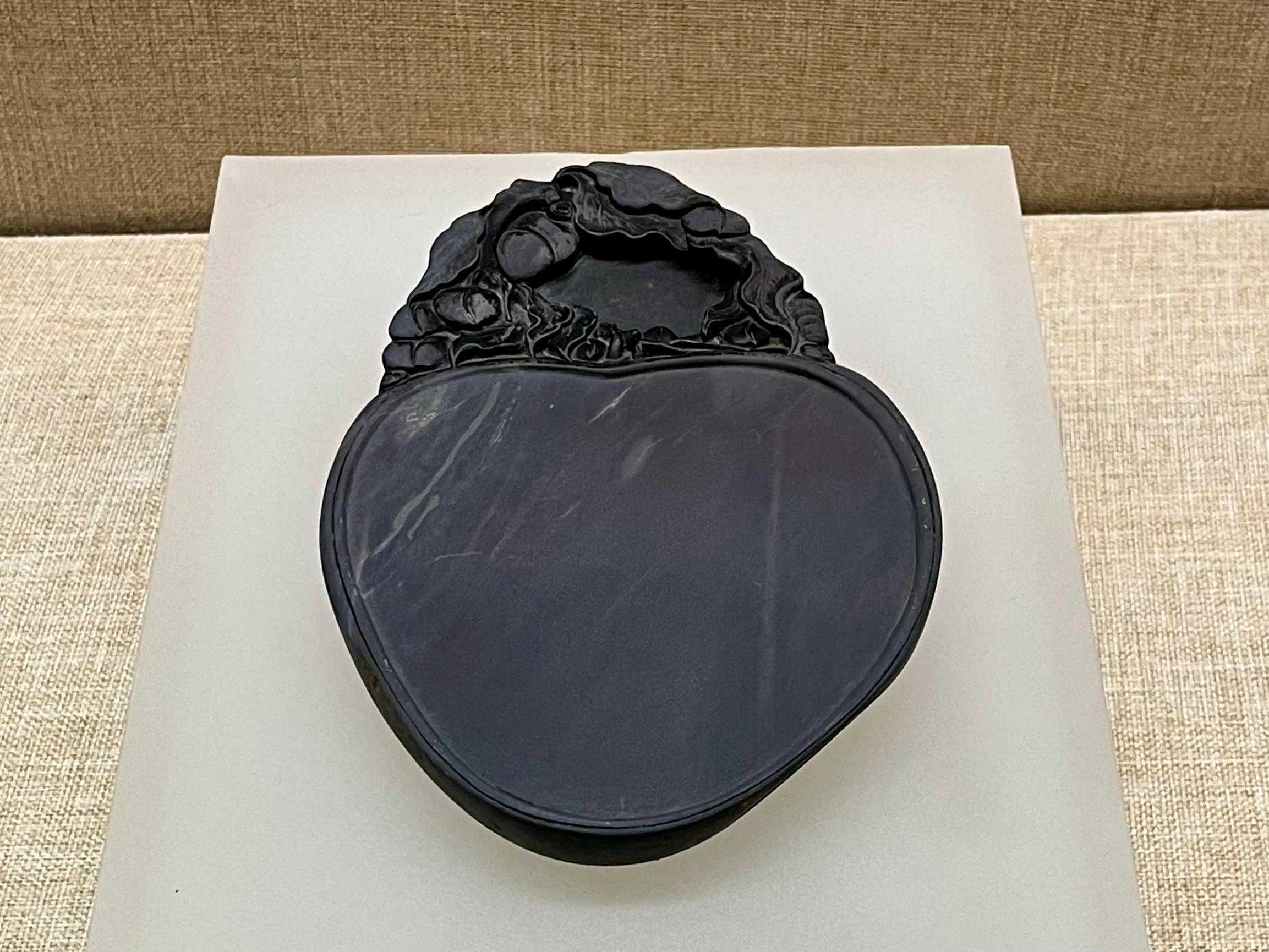 此砚两侧外撇弧度较大,似斧钺之形。其体量较大、造型浑朴,是明代制砚风格的体现。