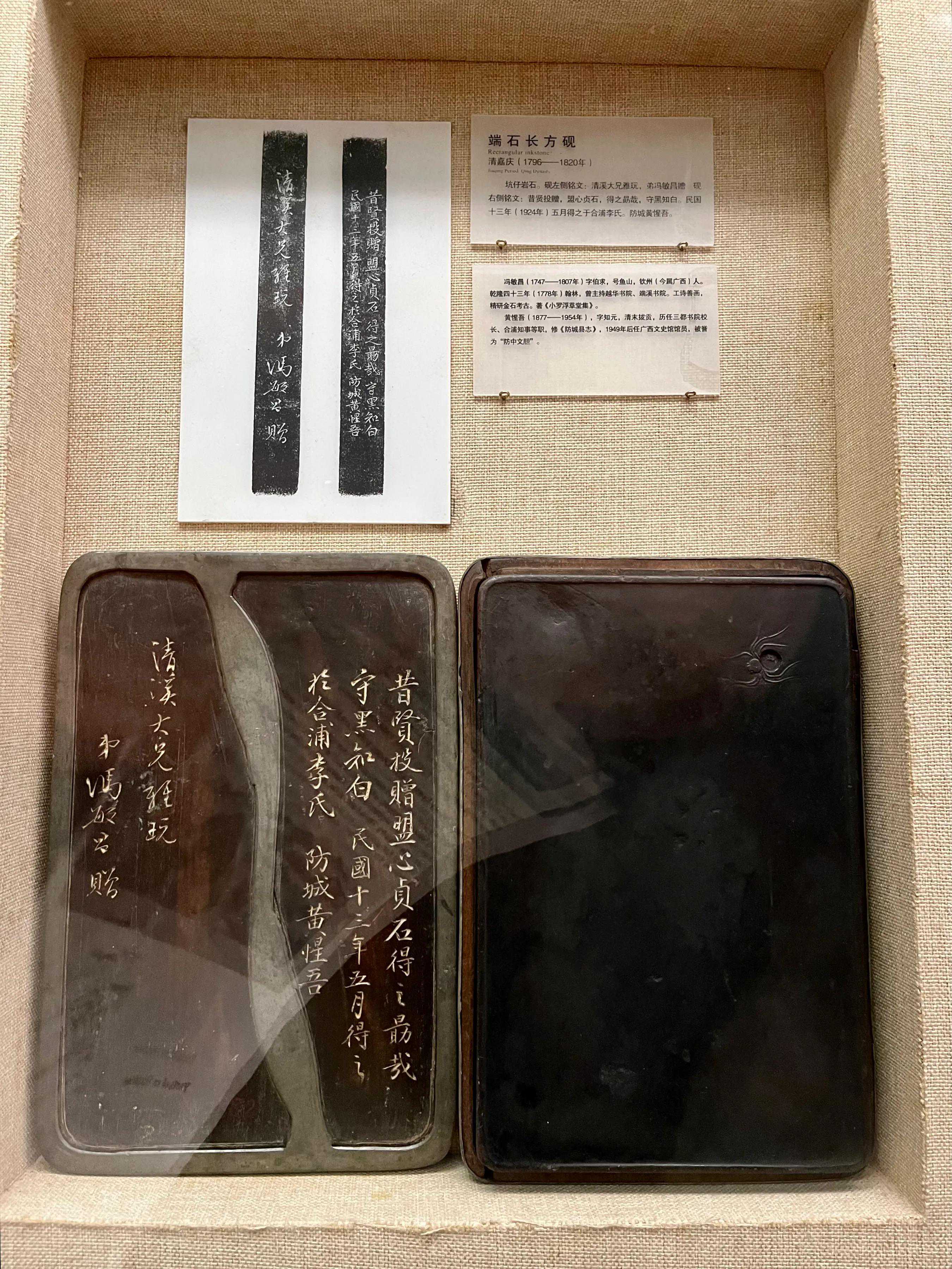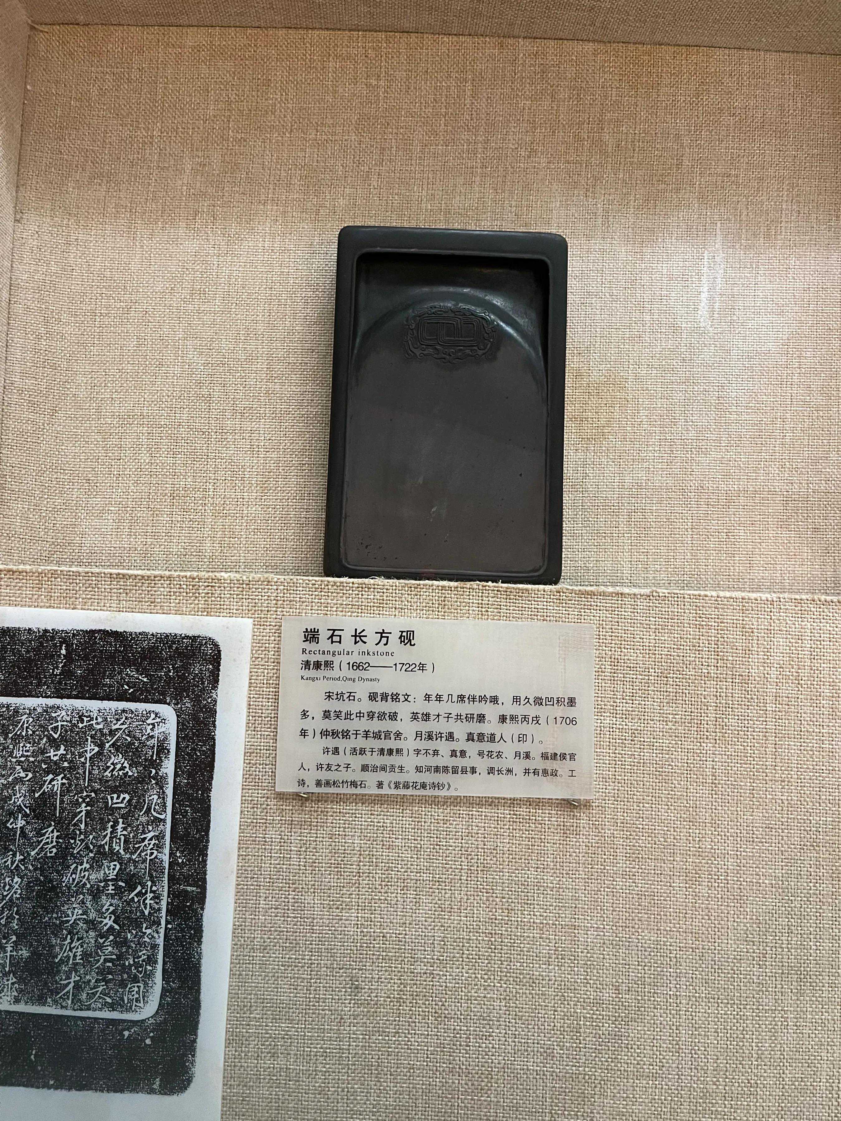 坑仔岩石,砚背有铭文。