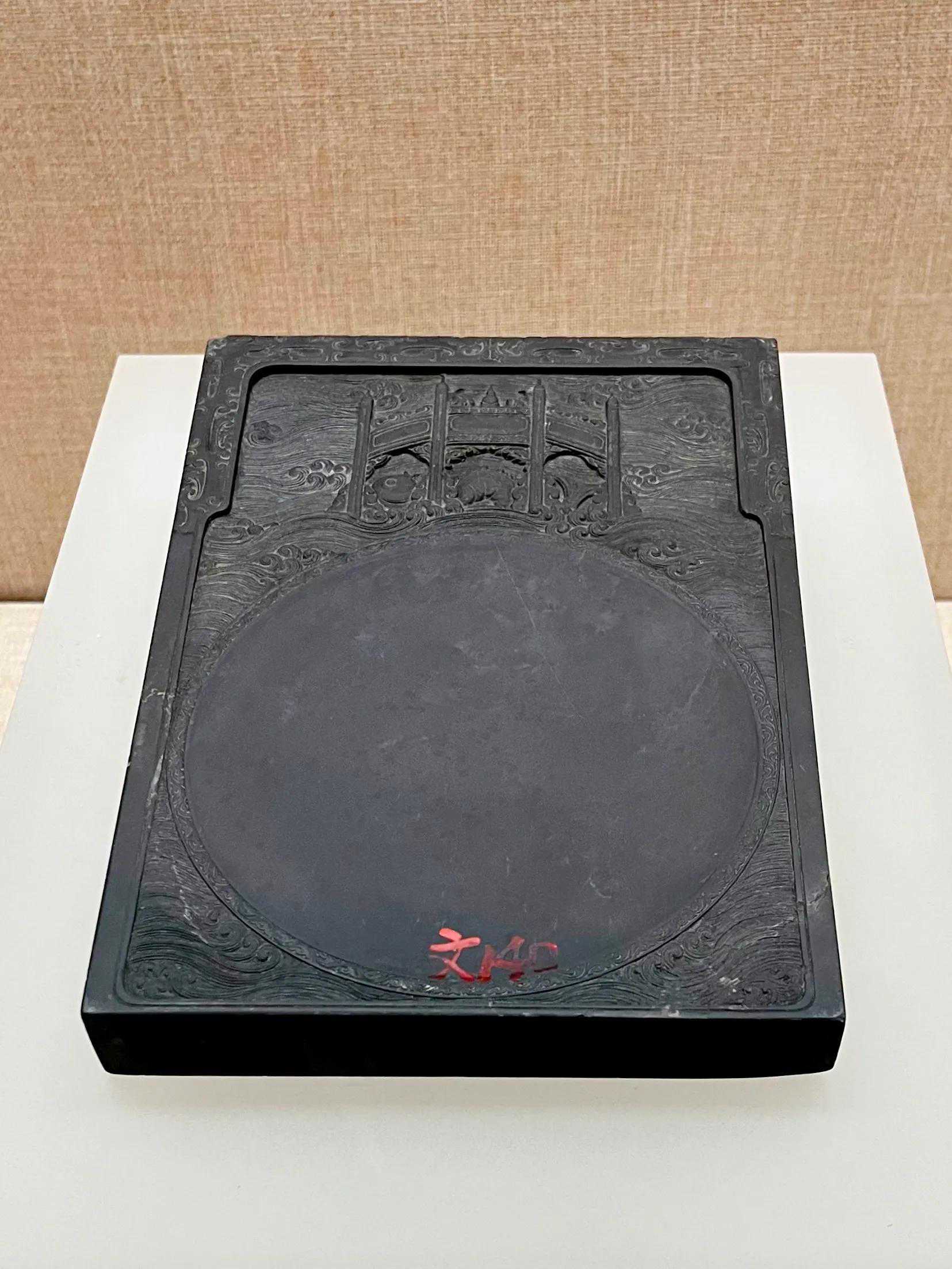 宋坑石。广东省博物馆新馆的建筑造型,以“盛满珍品的宝盒”为设计理念,被广大市民俗称为“月光宝盒”,此砚是为迎接2010年新馆开放设计制作的。