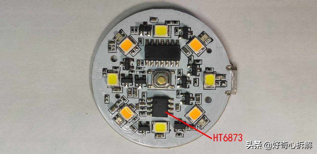 这灯板有个挺神奇的地方,自带一个功放芯片HT6873,可以控制灯光根据音频输入跳动