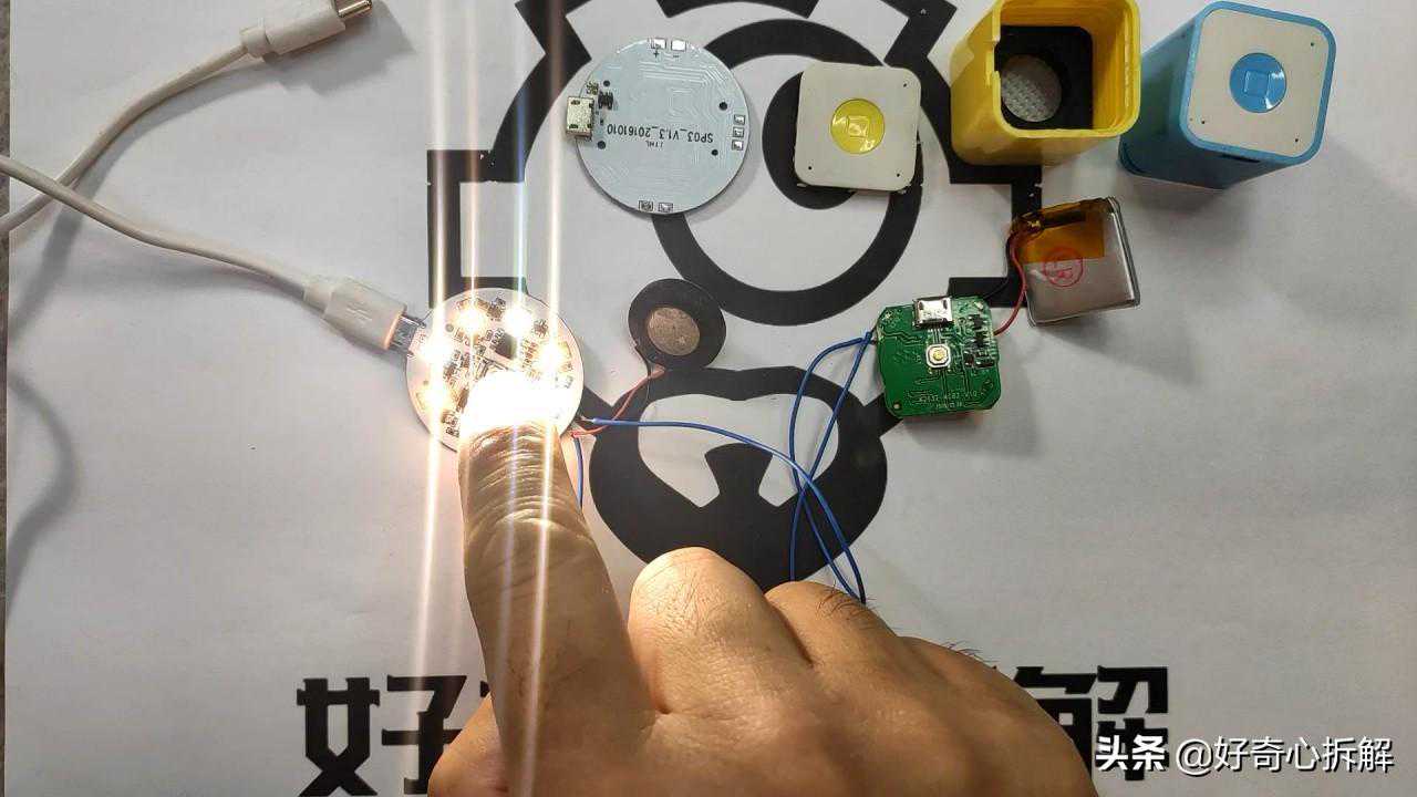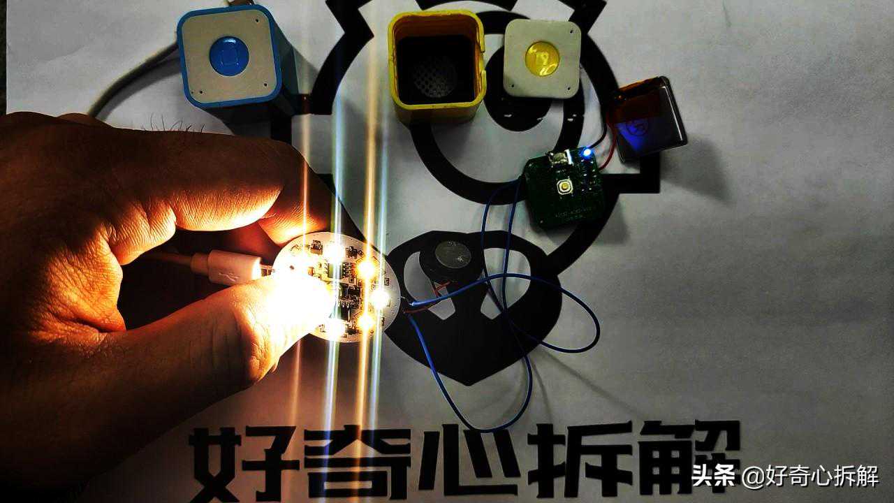 前几天开隔壁老王的盲盒,发现里面有几个被小王们玩坏的小音箱,还有个带功放的小灯板,看这俩货能不能组合到一起