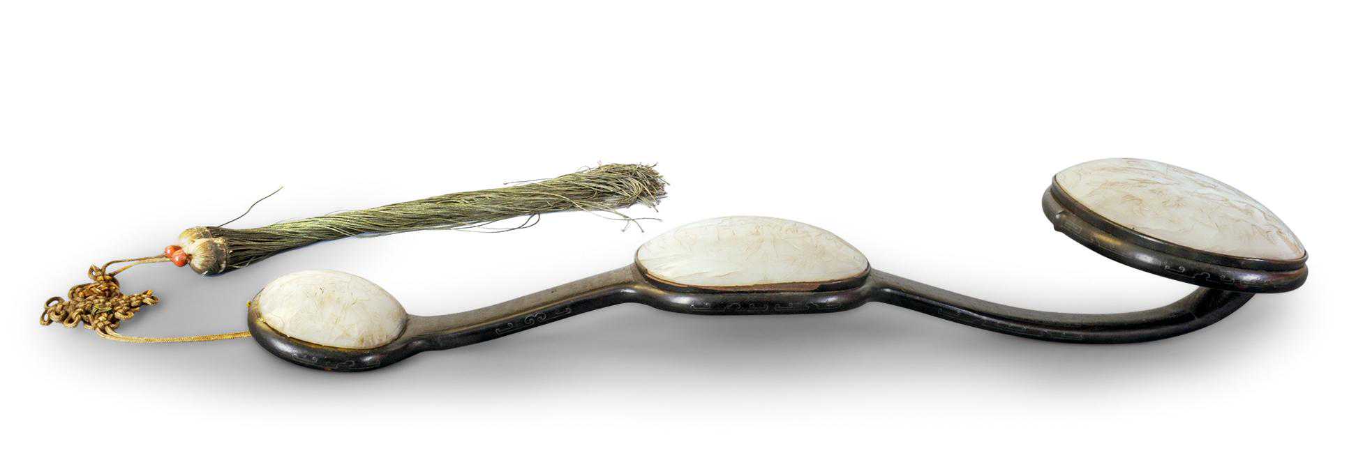 三镶如意是清乾隆年间创造的一种如意形制,此后非常流行,初见于竹木材质,后扩展于竹木之外,所镶嵌之物也不再限于玉饰。