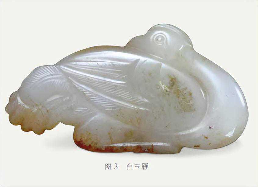 白玉雁(图3),安徽省文物局收藏,长6.3公分,高3.4公分。那是一种半透明的白色,带着淡淡的黄色。