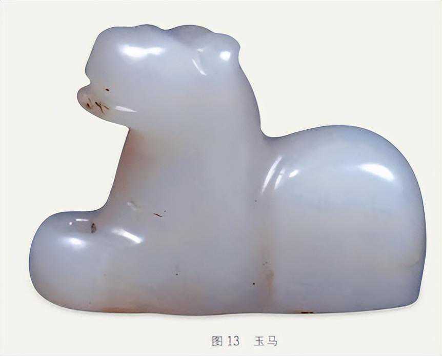 玉马(图13),长2.7,宽1.1,高2cm,西安市文博博物馆收藏。一匹玉马曲膝而坐,微微点头。