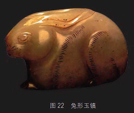 “兔形玉镇”(图22)为衢州市史绳祖墓出土,衢州市博物院收藏,长6.7公分,宽2.6公分,高3.6公分。