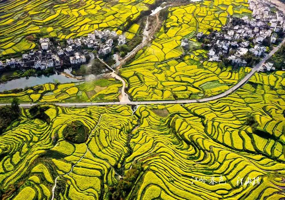 江岭:中国四大油菜花海之一、10万亩梯田油菜花海、世界级摄影基地、春季婺源必游首选景点