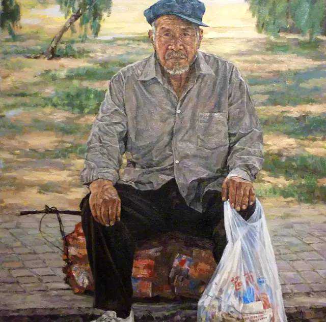 碛口老汉布面油画100X80cm2016年